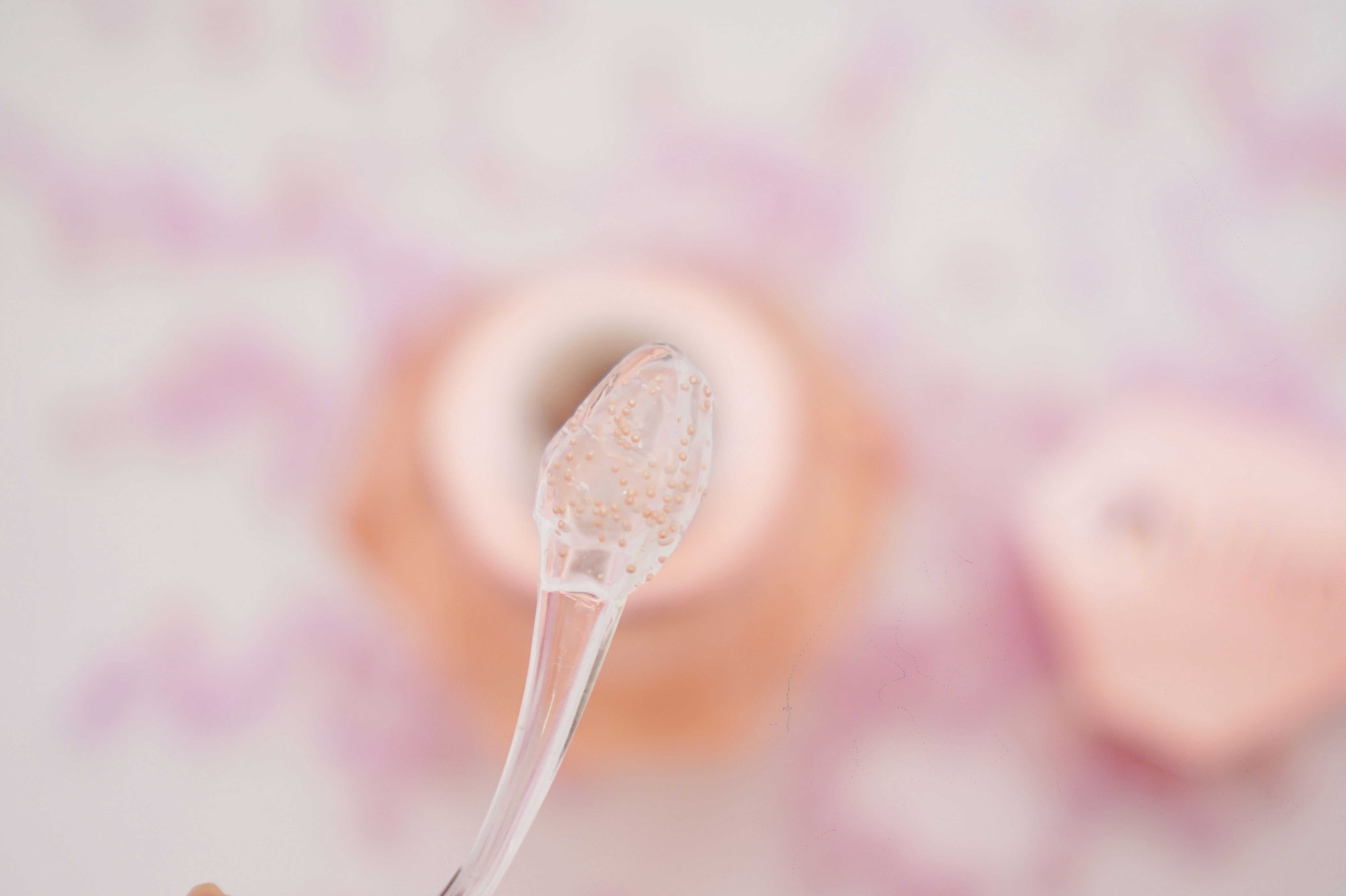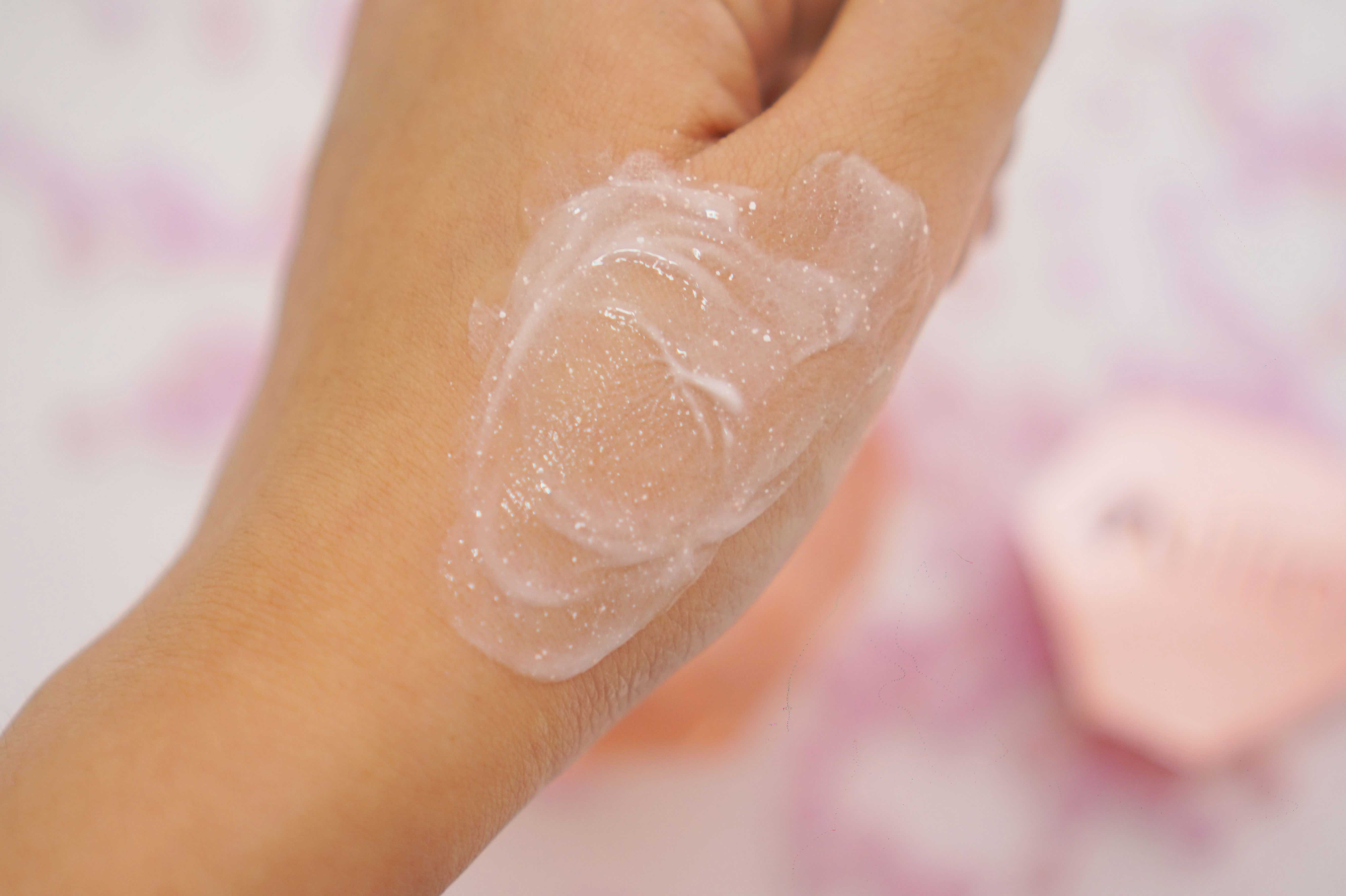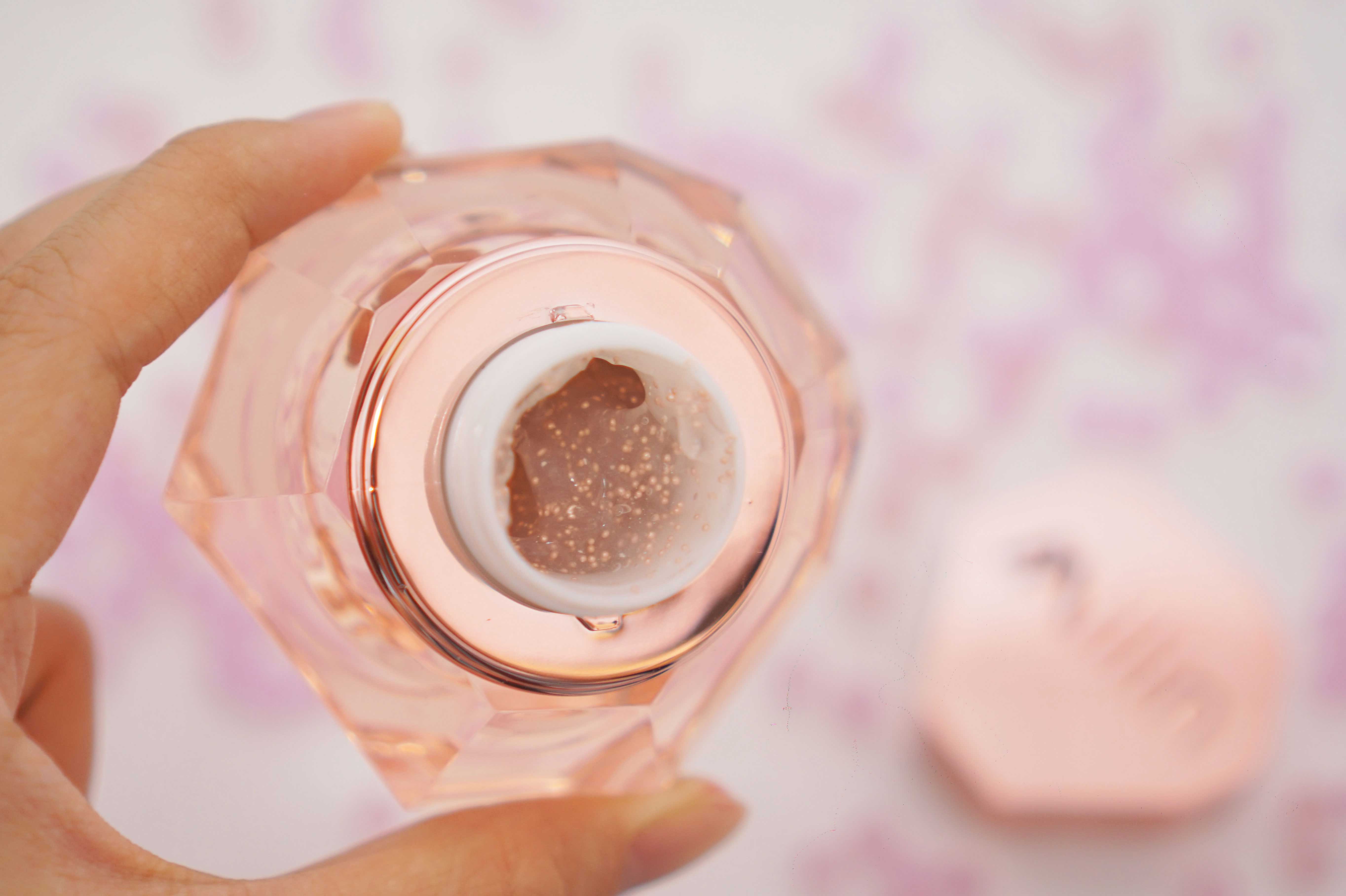 พอเม็ดบีดแตกตัวรวมกับเอสเซนต์แล้วก็จะมีลักษณะเป็นเนื้อเจลขาวๆแบบนี้