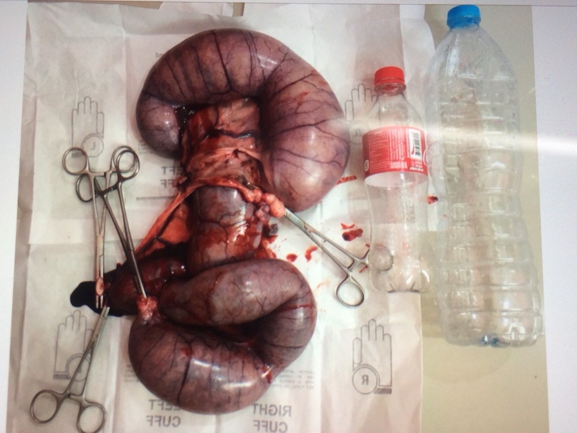 อันนี้มดลูกของน้องที่ผ่าออกมาแล้ว หนักประมาณ 3.8 กิโลกรัม ข้างในเป็นน้ำหนอง