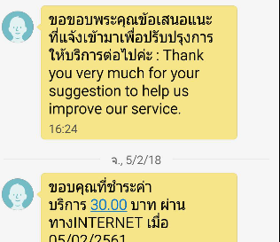 มีการโทรแจ้งจากDTAC ว่าดูแลค่าใช้จ่ายให้ แต่ส่งข้อความมาแบบนี้ ลูกค้าจะเข้าใจว่าไงครับ จะโทรไป CallCenter ก็รอนานนนนนน ข้อความควรปรับปรุงนะครับ ผมตกใจคิดไปว่า SMSขยะมาหลอกเก็บเงินอีกแล้ว แล้วคำถามผมในกระทู้นี้ https://pantip.com/topic/37343229/comment10-2 เห็นว่าจะตอบผม ผมรอคำตอบอยู่นะครับ