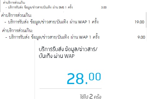 จากนั้นผมเลยไล่ดูใบแจ้งหนี้เก่าๆเท่าที่ดูได้ ทั้งของผมและภรรยา กลายเป็นว่านี่ไม่ใช่ครั้งแรก แต่เราไม่เคยเอะใจเลย เพราะแต่ละเดือนมันแฝงมาครั้งละไม่กี่บาท (ต่ำสุด 3 บาท สูงสุดรอบบิลนี้ 28 บาท) ต้องยอมรับเลยว่าสะเพร่ามากที่ไม่ได้ตรวจไม่แจ้งหนี้อย่างละเอียด แต่ก็มั่นใจเลยว่าไม่เคยไปกดสมัครหรือใช้บริกาารอะไรพวกนี้