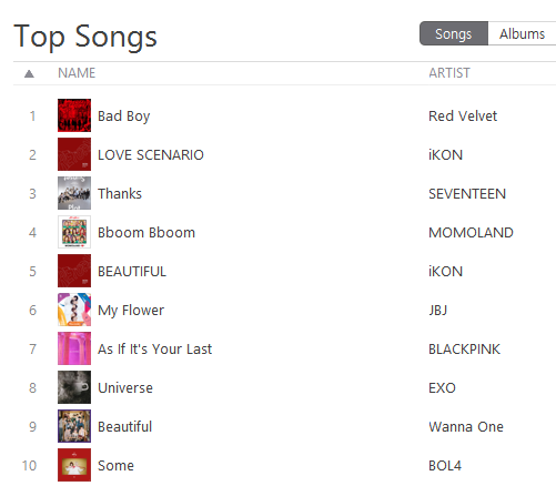 [K-POP] รายงานชาร์ต Top 10 K-POP Songs Apple Music & iTunes Store Thailand (06-Feb-18)