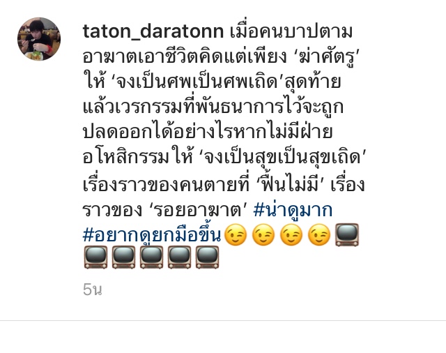 หลังจากที่ดูพรายพิฆาตจบไปไม่กี่วัน วันนี้เริ่มมาดูรอยอาฆาตย้อนหลัง อยากดูเป็นทุนเดิมอยู่แล้วเพราะชอบบังอานัสมาตั้งแต่เด็กๆ พอมาดูแล้วก็รู้สึกถึงความประทับใจ เพร