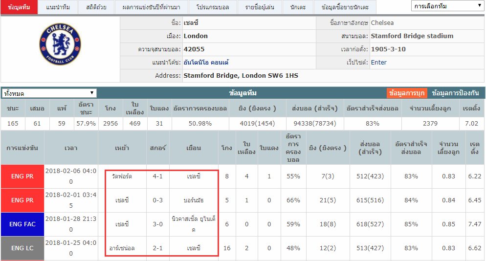 01/02/2018-05/02/2018 2 นัด เสียประตู 7 ลูก
