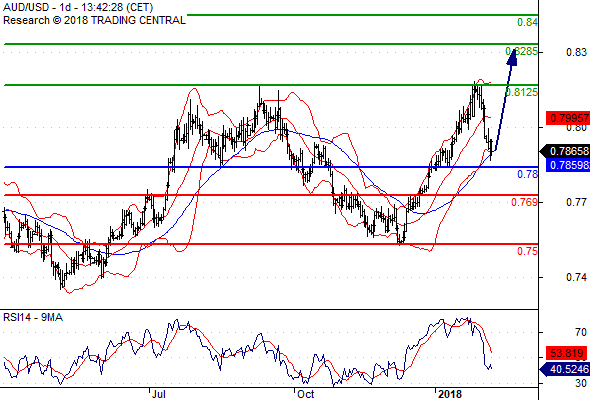 จุดที่ต้องการ: สถานะซื้อสูงกว่า 0.7800 เป้าหมายต่อไปที่ 0.8125 และ 0.8285