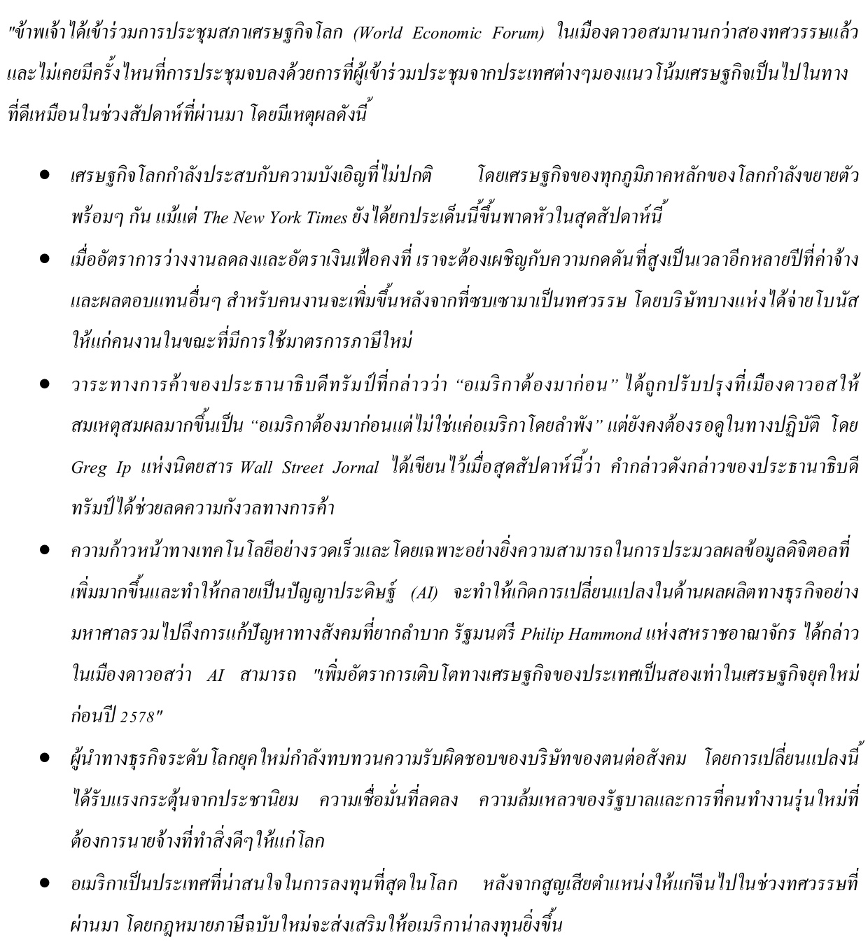 สรุปผลการประชุมเรื่องเศรษฐกิจที่เมือง ดาวอส (จากบริษัท PSL)สั้นๆครับ