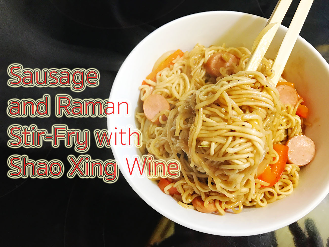 ผัดบะหมี่ฯใส่ไส้กรอกและไวน์ข้าว