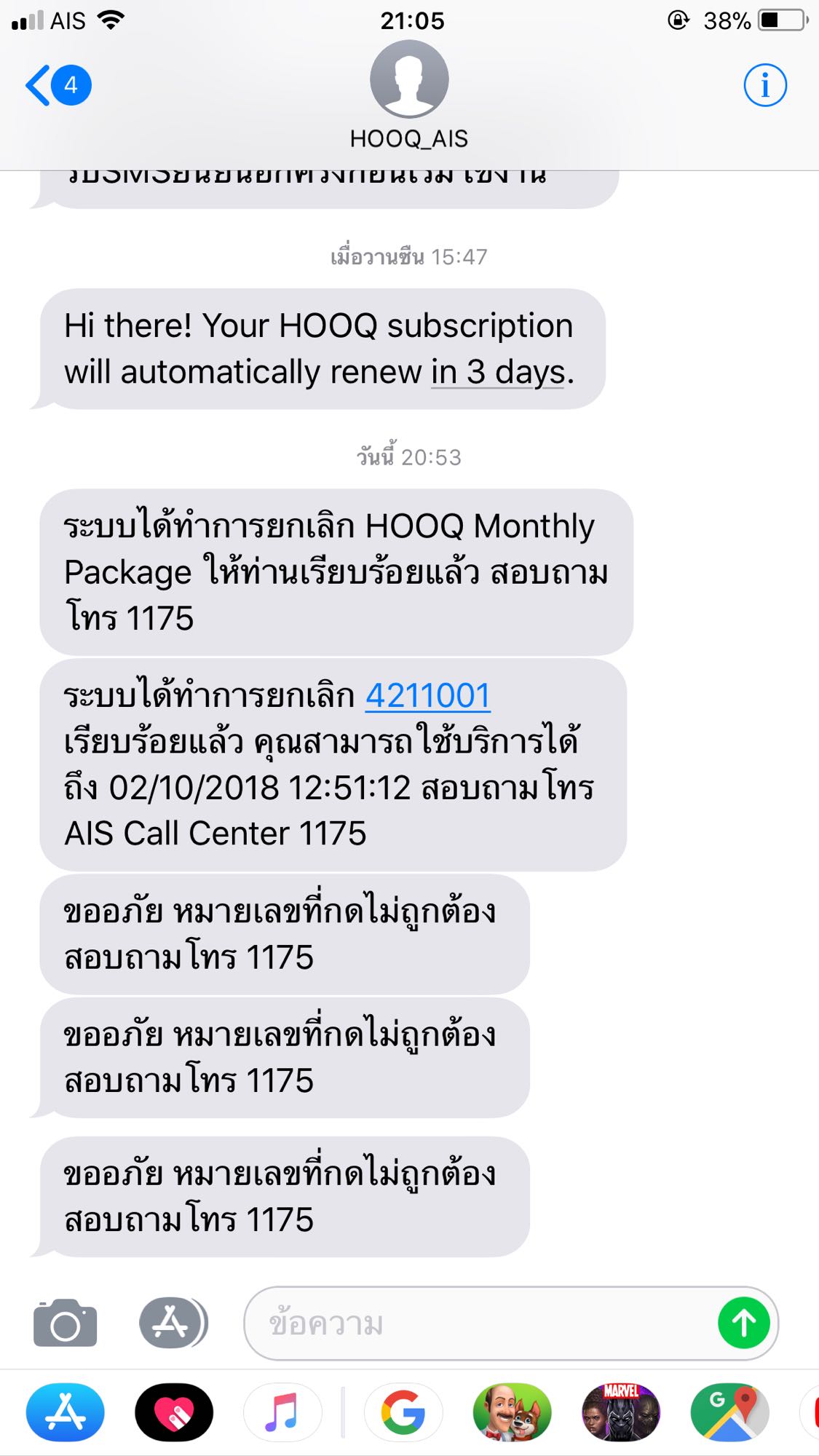 ทำไม HOOQ AIS มันยกเลิกไม่ได้ครับ ผมลองกด *421100199 แล้ว ระบบก็ยังไม่ยอมยกเลิกให้ กลับมี SMS มาแจ้งว่า 'ขออภัย หมายเลขที่กดไม่ถูกต้อง' ทำไมมันถึงได้ยุ่งยากลำบากกับคนใช้งานแบบนี้ครับ