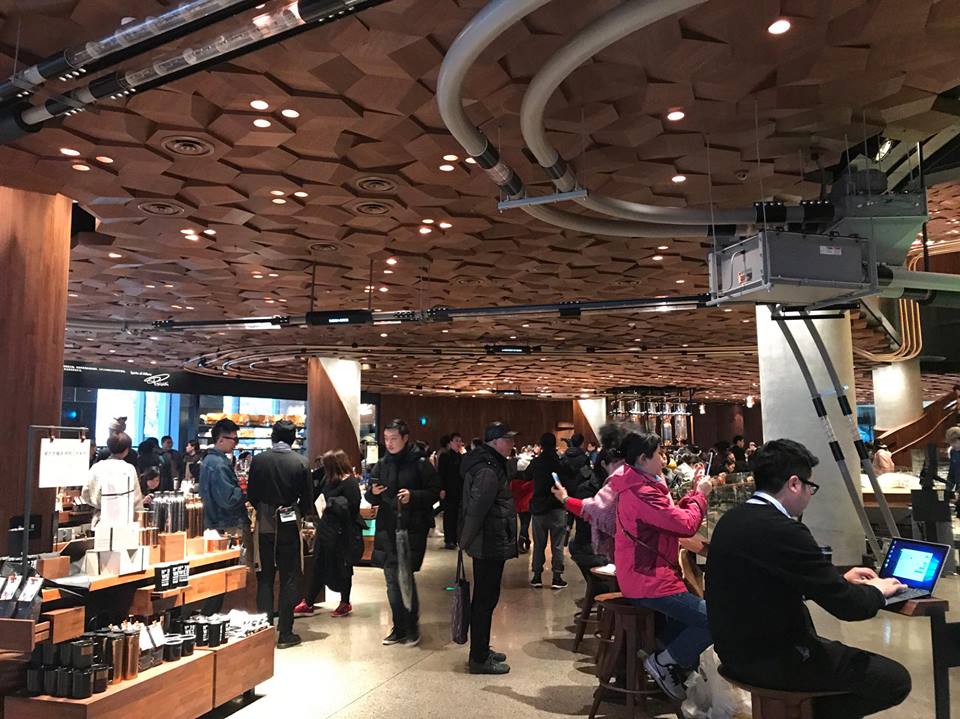 สตาบักส์ที่ใหญ่ที่สุดในโลกกก คนเยอะมากก ไม่มีที่นั่งจ้า ต้องรอสักพักเลย กว่าคนจะลุก