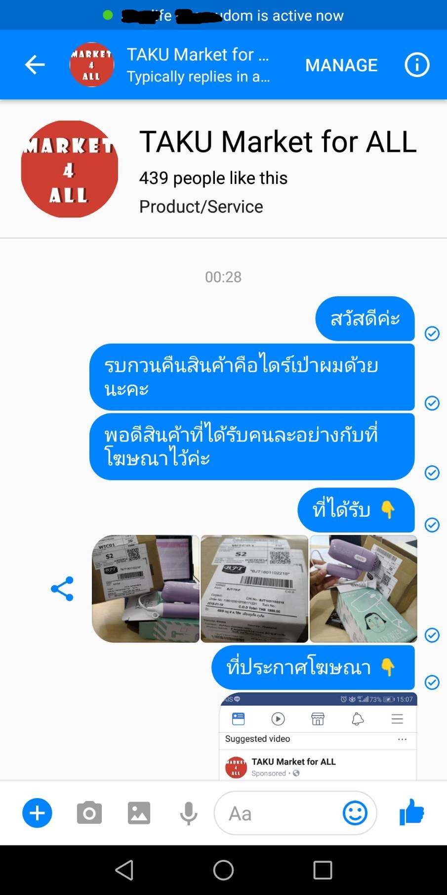เตือนภัยเพจ TAKU Market for ALL ลวงโลก