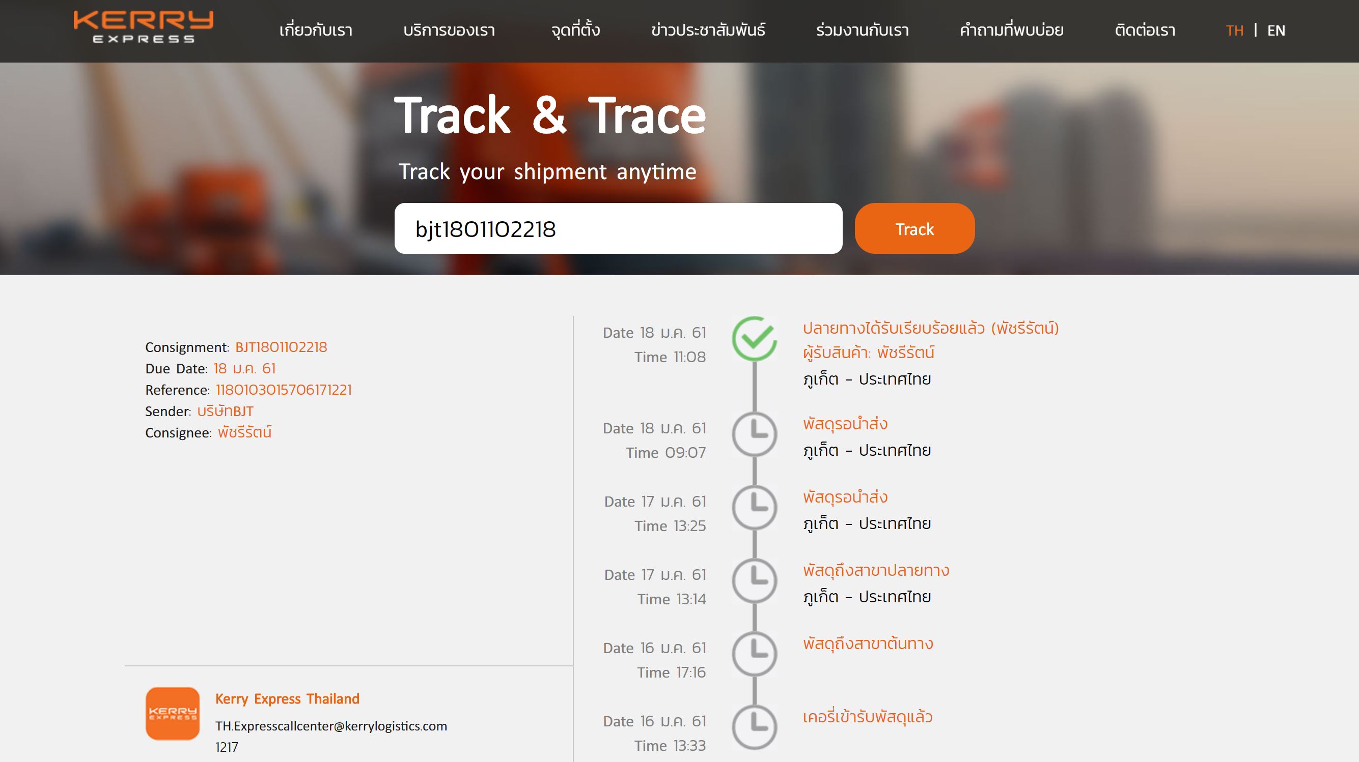 อันนี้เป็น trakking no. ขนส่งนะคะ