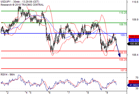 จุดที่ต้องการ: สถานะขายต่ำกว่า 109.30 เป้าหมายต่อไปที่ 108.55 และ 108.25