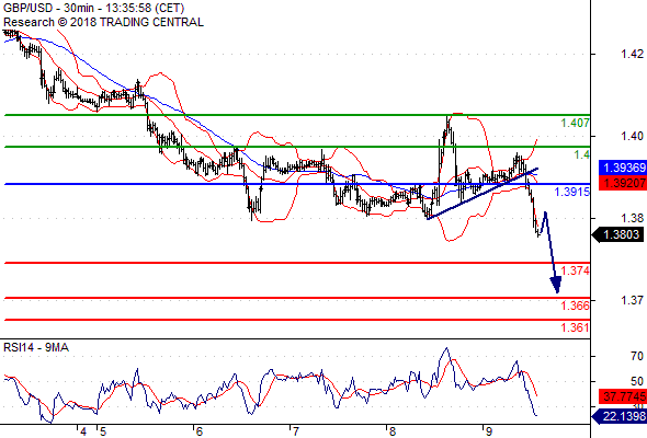 จุดที่ต้องการ: สถานะขายต่ำกว่า 1.3915 เป้าหมายต่อไปที่ 1.3740 และ 1.3660