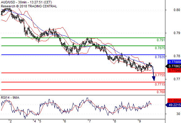 จุดที่ต้องการ: สถานะขายต่ำกว่า 0.7835 เป้าหมายต่อไปที่ 0.7755 และ 0.7715