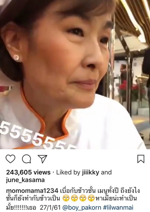 บอย : “อ๋อ เรื่องนั้น เดี๋ยวนี้แม่ไม่ค่อยได้ทำกับข้าว เป็นคนงานที่บ้านทำ ความจริงก็ไม่มีอะไร ส่วนใหญ่กับข้าวที่บ้านเป็นเมนูวนไปวนมาซ้ำๆ ผมก็เลยแซว แต่ที่แม่พูดแบบนั้นเพราะแซวเล่น”