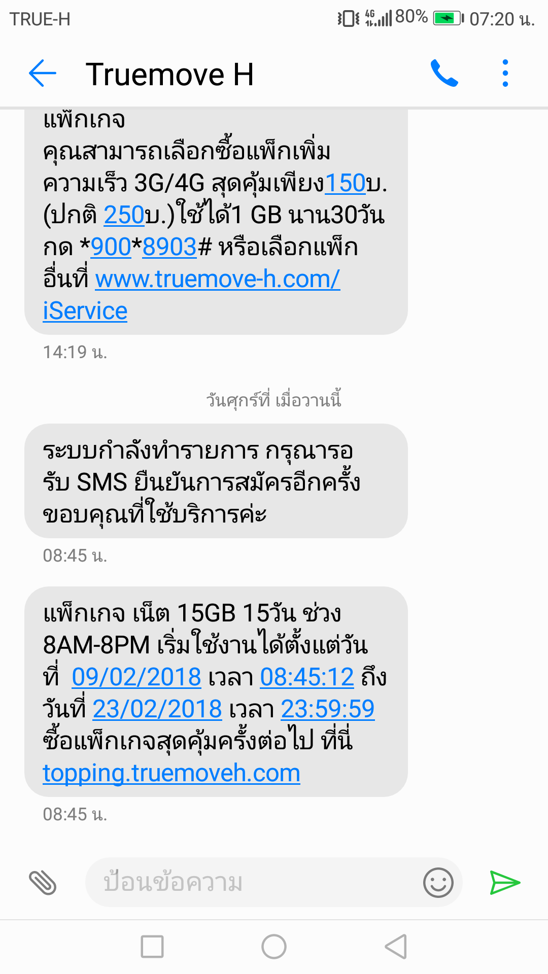 แต่เหตุไม่ปกติก็เมื่อหลังสองทุ่มเน็ตเต่ามากโหลดอะไรไม่ขึ้นเลย จึงย้อนกลับไปอ่านข้อความที่ true ส่งมาให้เท่านั้นแหละ เวลาที่ใช้ 8 am - 8 pm