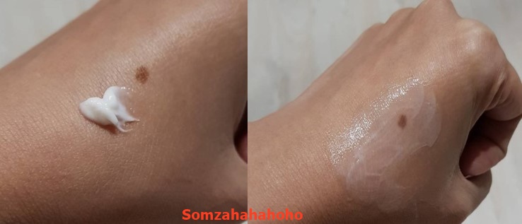 เนื้อสัมผัส คือ เนื้อครีมสีขาวขุ่น เข้มข้น มีกลิ่นหอมอ่อนๆ ซึมเร็ว