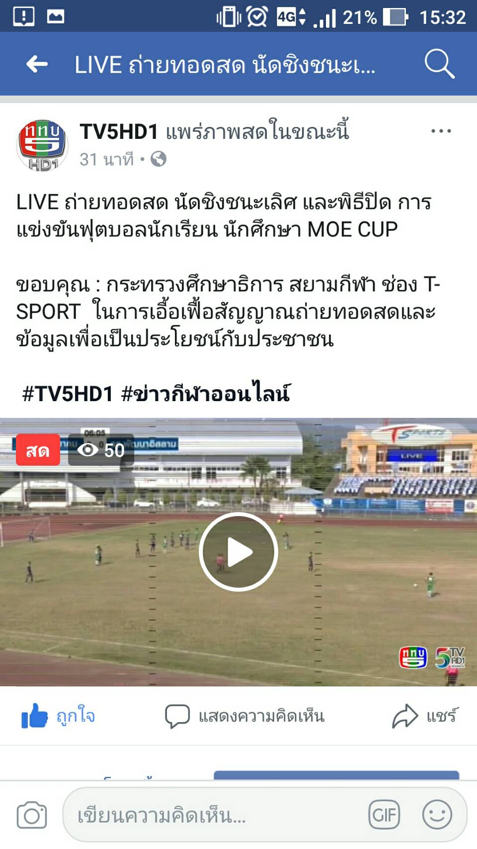 Live สด คู่ชิงชนะเลิศ Moe cup และพิธีปิด
