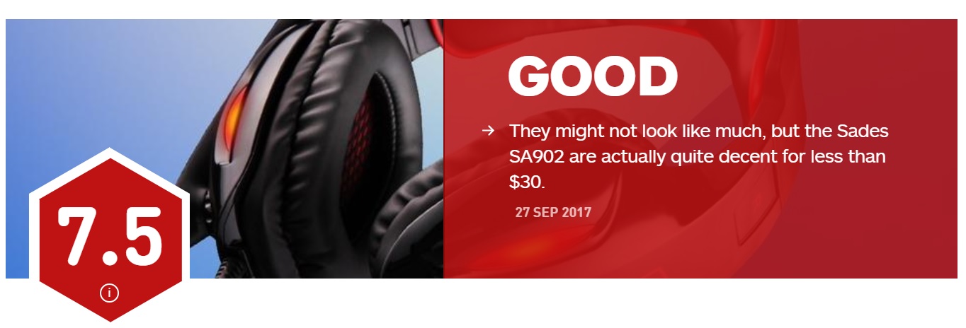 http://www.ign.com/articles/2017/09/28/sades-sa902-71-usb-surround-pc-gaming-headset-review) ในปี 2017 ที่ผ่านมา และเป็นหูฟังที่ได้รับการรีวิวดีมากจากเว็บต่างประเทศต่างๆ เช่น:-