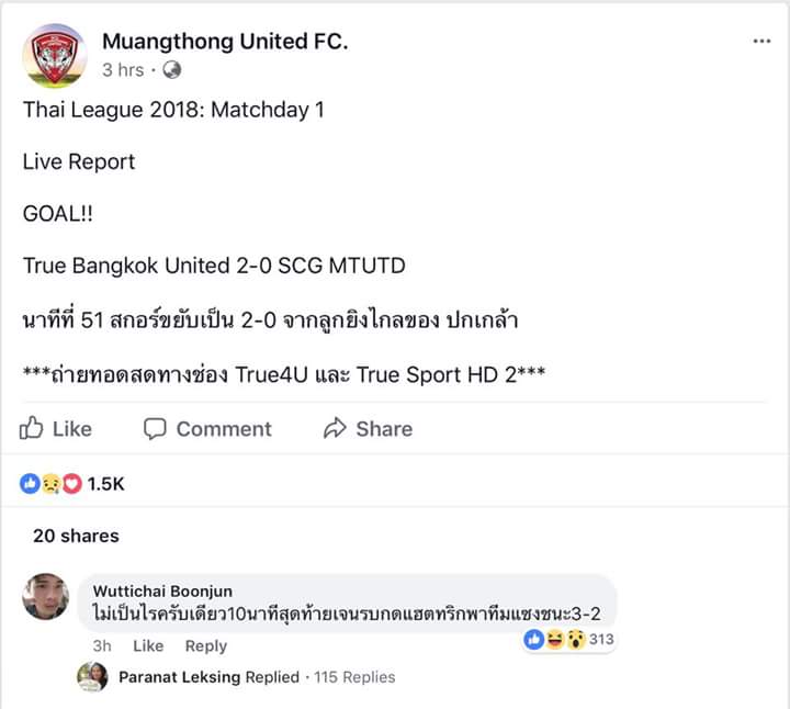 จากเกม แบงคอก 2-3 เมืองทอง โดยแฟนบอลมือสมัครเล่น กับคอมเมนท์จากโลกอนาคต
