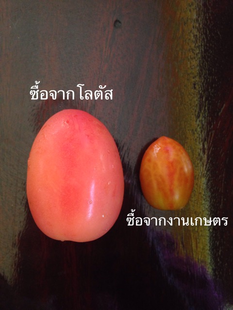 คือแม่ของจขกท.ซื้อมะเขือเทศสีดามาจากงานเกษตรเมื่อวาน วันนี้เอามากิน กินไปกินมาเจอมะเขือเทศลูกนึงผิวมันลอกๆ แม่เลยลองเอามีดมาขูดผิวดู มันลอกๆออกเป็นเหมือนเคลือบพลาสติกหรือเคลือบอะไรสักอย่างเลยค่ะ เลยเอามะเขือเทศที่ซื้อจากโลตัสมาขูดดูผิวไม่ลอก แต่อันที่ซื้อจากงาน พอขูดแล้วลอกออก ตอนแรกผลสีส้มตอนนี้เหมือนสีของโลตัสเลยค่ะ อยากรู้ว่า มีใครรู้บ้างว่ามันเคลือบอะไร หรือใครเขาทำกันเป็นปกติอยู่แล้ว กินเข้าไปจะเป็นอันตรายต่อร่างกายมากไหม คือกินไปส่วนนึงแล้ว วอนผู้รู้ด้วยค่ะ