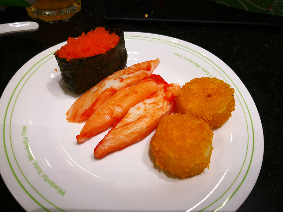ซูชิต่างๆ และปูอัด ส่วนตัวไม่ค่อยชอบซูชิของที่นี่เท่าไหร่ค่ะ มันชืดและแห้งๆ เหมือนตากลมมาทั้งวัน