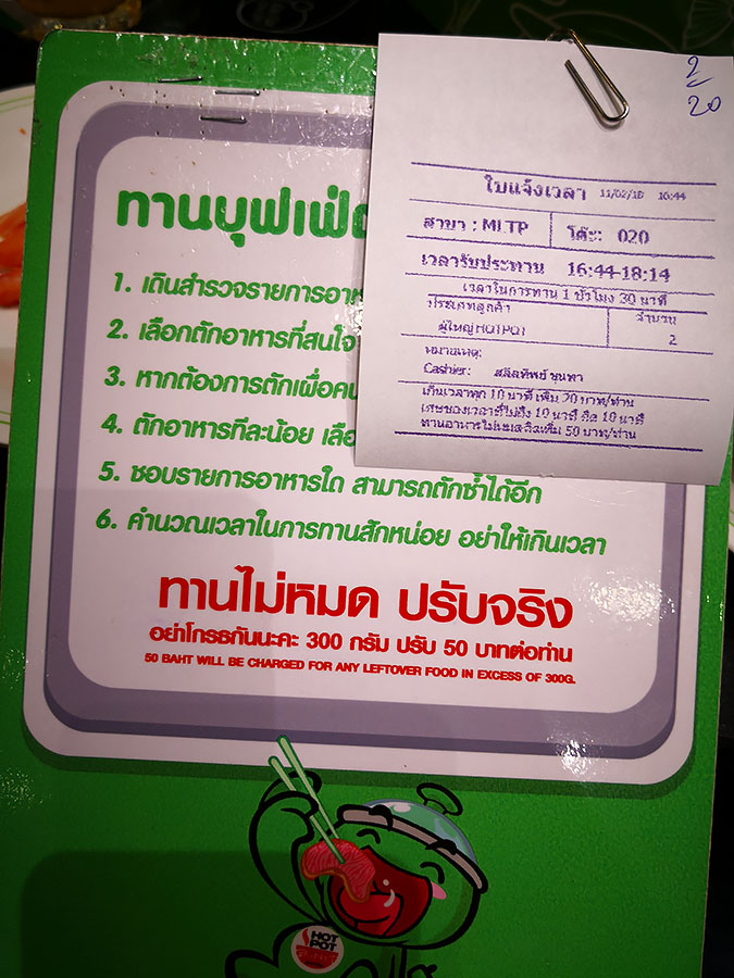 พนักงานเดินมาแจ้งเวลา เรามีเวลากินทั้งหมด 1 ชั่วโมง 30 นาที