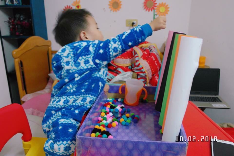 เซตนี้ก็ไม่มีอะไรใากหาอะไรมาสยบเด็กจอมซนเอากระดาษมากางออก เอาถาดสีมาวางลูกวิ่งตามตูดเลย5555 เด็กกับสีเป็นของคู่กัน