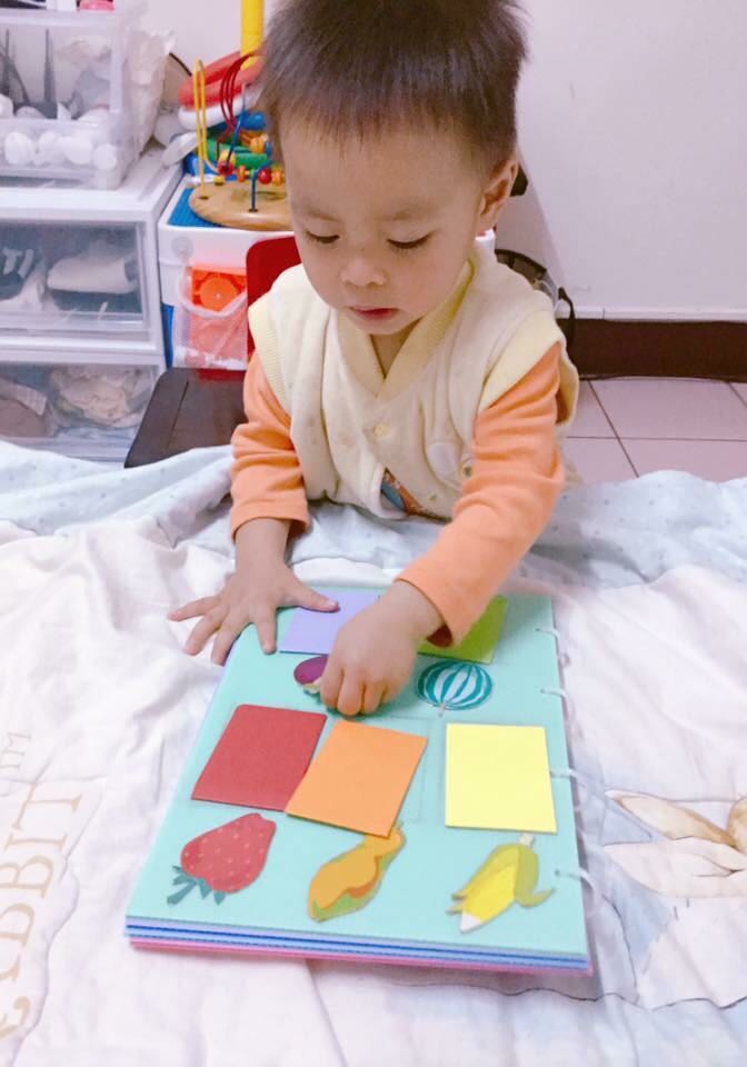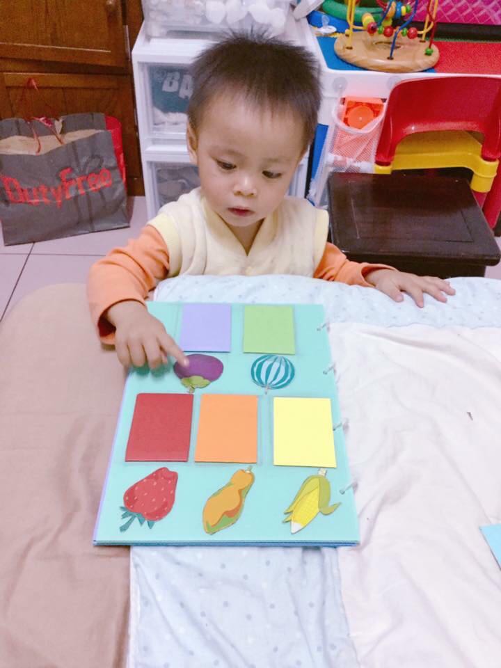 เซตนี้แม่เอารูปผลไม้ที่ลูกชอบมาตัดแปะลงไปแล้วทำการ์ดสีๆให้ตรงกับสีผลไม้ เช่น สตอเบอรี่ สีแดง เป็นต้น แล้วให้ลูกนำสีมาวางให้ตรงกับสีของผลไม้ ผลคือ ลูกนังแยกๆม่ได้ แต่สามารถบอกว่าผลไม้ชนิดนี้คออะไร รอโตอีกหน่อยค่อยหยิบมาเล่นแล้วกันเนอะ
