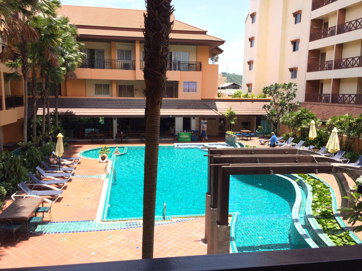 วิวหลังห้องได้วิวสระว่ายน้ำพอดีเลยโชคดีไปอีกอีกคือห้องพักเราสามารถทะลุไปหาห้องเพื่อนได้