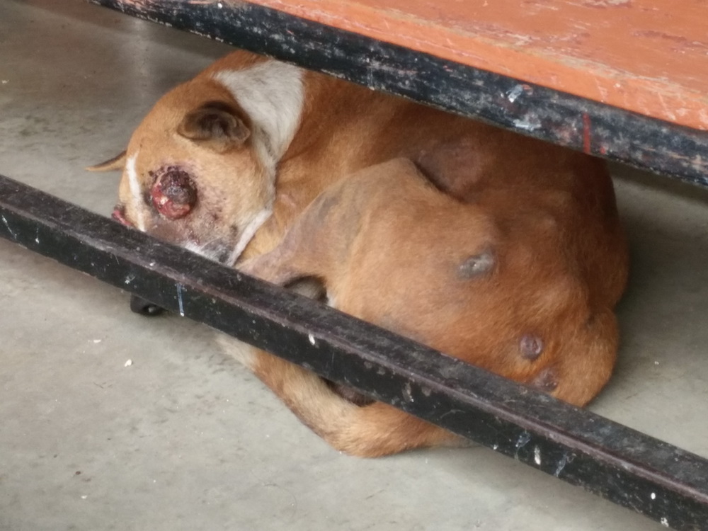 ไปเจอน้องหมาที่โรงอาหาร โรงเรียนลูก สภาพดวงตาน้อง บวมปูด น่าสงสาร อยากหาคนมาช่วยน้อง