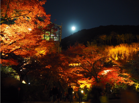 ... ถึงแล้ว เกียวโต ที่พักเราเป็นบ้าน Airbnb ไม่ไกลจากสถานี แต่เนื่องจาก สถานีเกียวโตนั้นไม่ใช่เล็กๆ ออกมาจาก Shinkansen ก็จะงงหน่อยๆ ออกมาก็พยามหาว่าบ้านต้องเดินไปทางไหน สรุปเปิดเช็ค google map มันบอกเดิน 11 นาที อย่าไปคิดมาก ลากกระเป๋าวนกลับไปรอ Taxi #ปัญหาไหนที่เงินแก้ได้ไม่เรียกว่าปัญหา เก็บแรงไว้ทำอย่างอื่น ไม่เดินสิ ในใจก็เคืองเจ้าของบ้าน ที่โฆษณาว่าบ้านห่างจากสถานี 2 นาที เอาจริงๆ มันไม่ไกล ถ้าออกถูกทางออก แต่เพราะเจ้าของบ้านมันไม่ได้บอกไว้ไง ว่า ออกทางออกไหน เรามาเจอว่าจริงๆ บ้านกะสถานี ห่างกันแค่เดิน 5 นาที และหน้าบ้านมี bus stop ที่ตรงไปที่วัดคิโยมิซึ (Kiyomizu dera) ได้เลย ถ้าเรามีบัตร IC ที่ใช้กับระบบขนส่งมวลชนที่นี่ได้ ก็ใช้ได้เลย ถ้าไม่มีก็หยอดเงินเที่ยวละ 230 เยน อากาศวันนี้หนาวพอควร คือ 8 องศา วัตถุประสงค์หลัก คือการดูไฟที่วัดKiyomizu ซึ่งปีนี้จะแสดงเป็นวันสุดท้ายพอดีเพ๊ะ เราออกไปประมาณ 5 โมงเย็น ไปถึงก็เดินเข้าซอยไปเรื่อยๆ เนื่องจากช่วงนี้ ต้นไม้ยังคงเป็นสีเหลือง สีแดง บ้างก็ร่วงไปบ้าง แต่ที่วัดยังคงแดง คงจะเพิ่งผ่านช่วงพีคมา เลยร่วงไม่เยอะมาก คนที่ชอบถ่ายรูปกลางคืน แบบ งูๆ ปลาๆ เลยจะสนุกนิดนึง