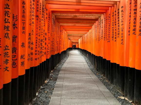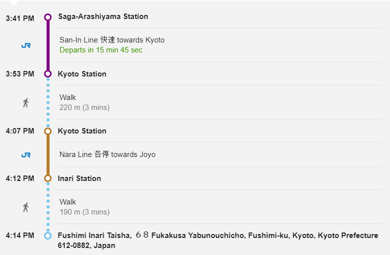 หลังจากออกจากที่นี่เราก็กลับไปขึ้นรถไฟ จากที่นี่ไปที่ Fushimi Inari ศาลเจ้าที่มีเสาสีแดงเรียงสวยงาม ใช่แก เห็นอื่นไปถ่าย เราก็จะคาใจนิดนึง ไหนขอได้สิ้ เราเป็นพวกไม่ชอบอ่าน หรือ ดูจากคนอื่น ของแบบนี้ต้องไปเสพเอง นั่งรถไฟจาก Saga-Arashiyama กลับไป Kyoto Station และเปลี่ยนรถไฟไปสายที่จะไป Nara ไปลง Inari Station แค่ 5 นาทีก็ถึงละ พอออกจากสถานี เราก็เจอกับวัดแล้ว ที่นี่ คือ Fushimi Inari Taisha