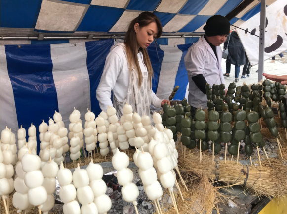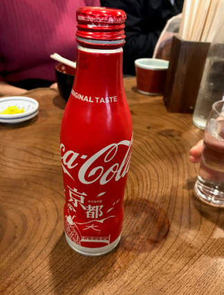 ระหว่างทางเดินลงจากวัด แยกมาทางขวามือ มีร้านขนม อาหารเรียงราย จำนวนร้านไม่มากนัก คนก็แวะชิม แวะซื้อกัน เราก็ซึ่งขนมกินเล่น จะต้องลงมาเจอของหนักเพราะนี่ ก็ปาไปบ่ายโมงแระ เราเลือกร้านที่ได้ขึ้นชื่อว่าเป็นร้านแนะนำย่านนี้ คนที่เรารู้จักมาที่นี่ แทบจะทุกคนกินร้านนี้ ร้านปลาไหล มีหลายสิ่งที่ทำจากปลาไหล คือหน้าร้านมีความเรียลมาก ทำการแร่ การแหกท้อง ปิ้งโชว์หน้าร้าน โอ้วววว ข้านี้ กลัวงูขั้นสุดและไม่ได้ชอบปลาไหลเป็นทุน ถึงกะใจสั่น แต่เพื่อนมาก็ต้องกิน อ่ะกินก็กิน หลายเสียงบอกว่าที่นี่ดี แต่ข้าก็ดูโชคไม่เข้าข้าง คือเราว่ามันยังคาว เกรงว่าจะคิดไปเองเพราะไม่ชอบปลาไหลเป็นทุนเดิม เลยหันไปถามเพื่อนที่เพิ่งมาที่นี่ไม่นาน มันก็บอก เออ คราวนี้ไม่ดีอ่ะ แต่คนส่วนมากว่าดี เราว่าไปแล้วก็ควรไปชิม ที่นี่มี coke Kyoto Edition ขวดน่ารักดี ประเทศบ้าอะไรไม่รู้ กุ๊กกิ๊ก ดีเทลเยอะดีจริงๆ