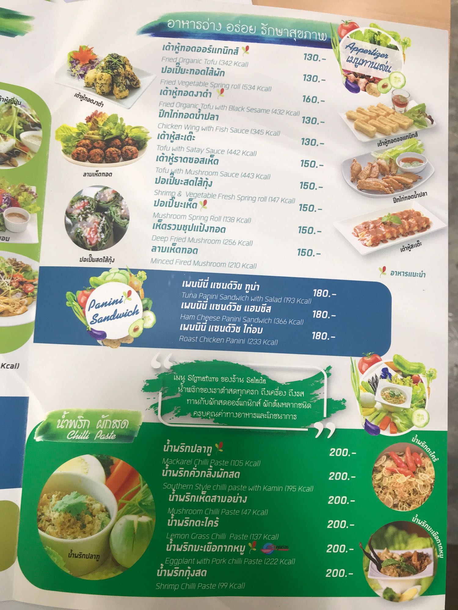 มาดูเมนูกัน เฮ้ยยยยย มันไม่ได้มีแค่เมนูสลัดนะคะ มีทั้งเมนูข้าวต่างๆ น้ำพริก รวมไปถึงพาสต้าต่างๆ เช่น cabonara ด้วย!!! (เอ๊ะ อันนี้เฮลตี้มั้ยนะ)