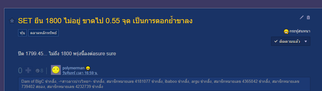 ถ้าหลังจากนี้ไม่มีเรื่องวุ่นวาย SET ไป 1780 จุด เม่าน้อยก็ตกรถซิครับ
