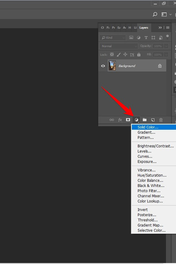 เริ่มต้นด้วยการเปิดโฟโตชอปขึ้นมา เปิดภาพ เลือกสร้าง Adjustment layer แบบ Solid color ขึ้นมา 1 เลเยอร์