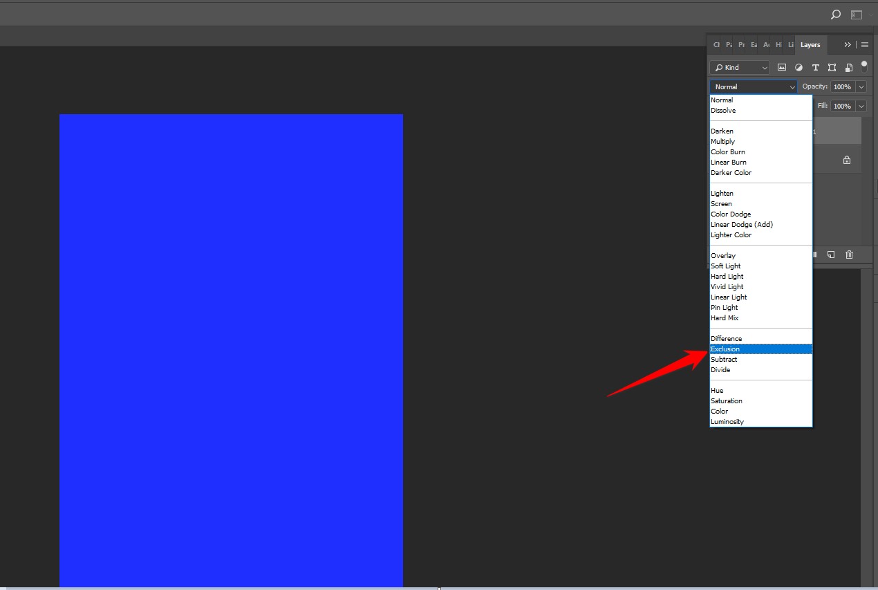 เลือกการซ้อนเลเยอร์เป็นแบบ Exclusion