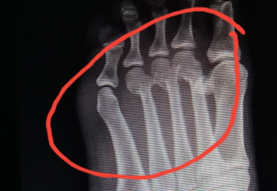 กระดูกส่วนปลายเท้าหักค่ะ คุณหมอเอาฟิลม์ให้ดูแล้วยัง งงๆ อยู่น่ะค่ะ รบกวนพี่ๆ ช่วยดูทีค่ะว่าแบบนี้ หักเยอะไหม