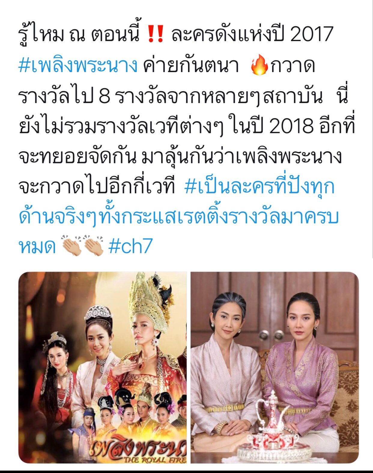 รู้ไหม ณ ตอนนี้ ละครดังแห่งปี 2017 #เพลิงพระนาง กวาดรางวัล 8 รางวัลแล้ว ปังมาก