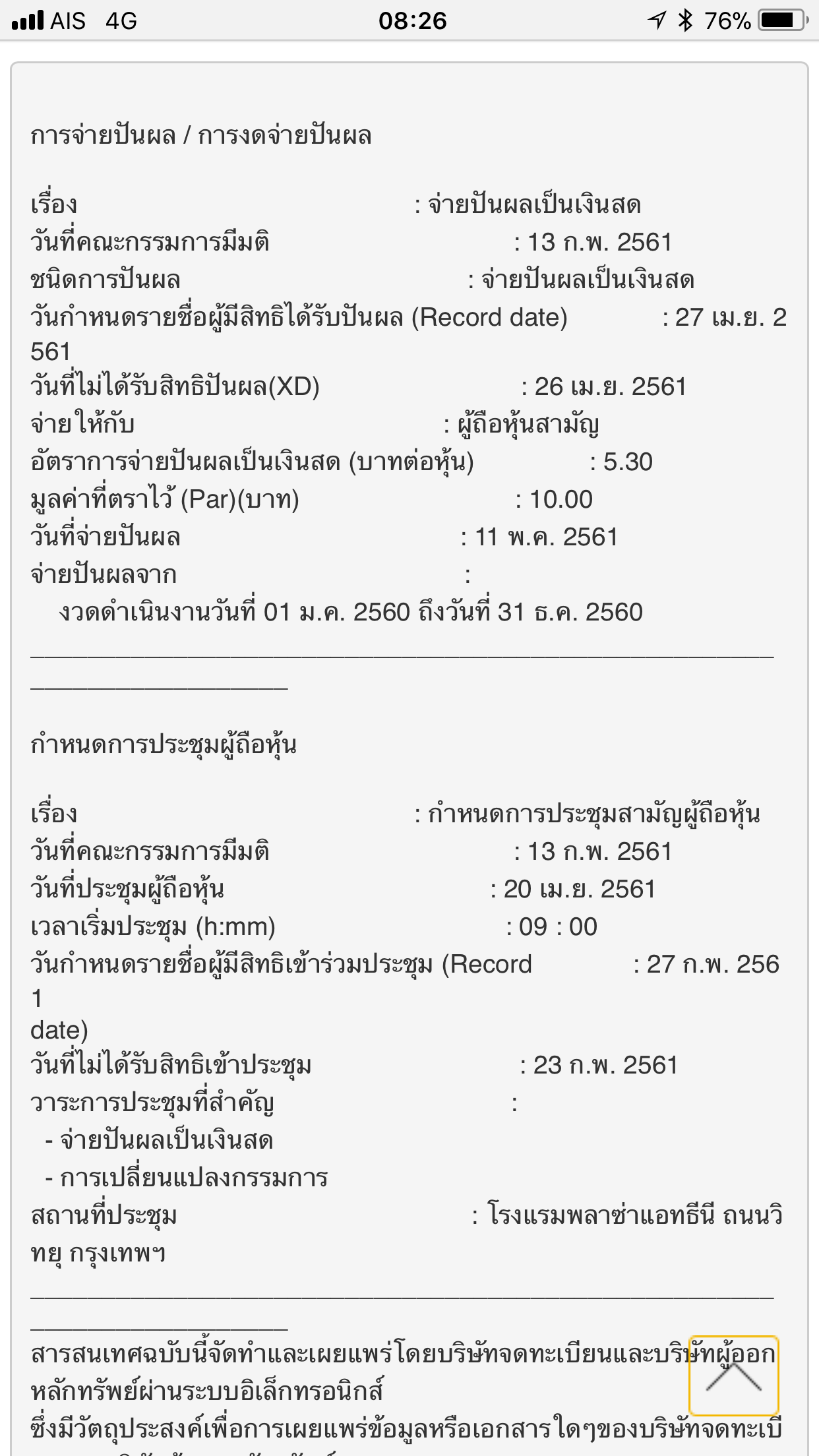 ปี 2560 จ่ายหุ้นละ 4 บาท