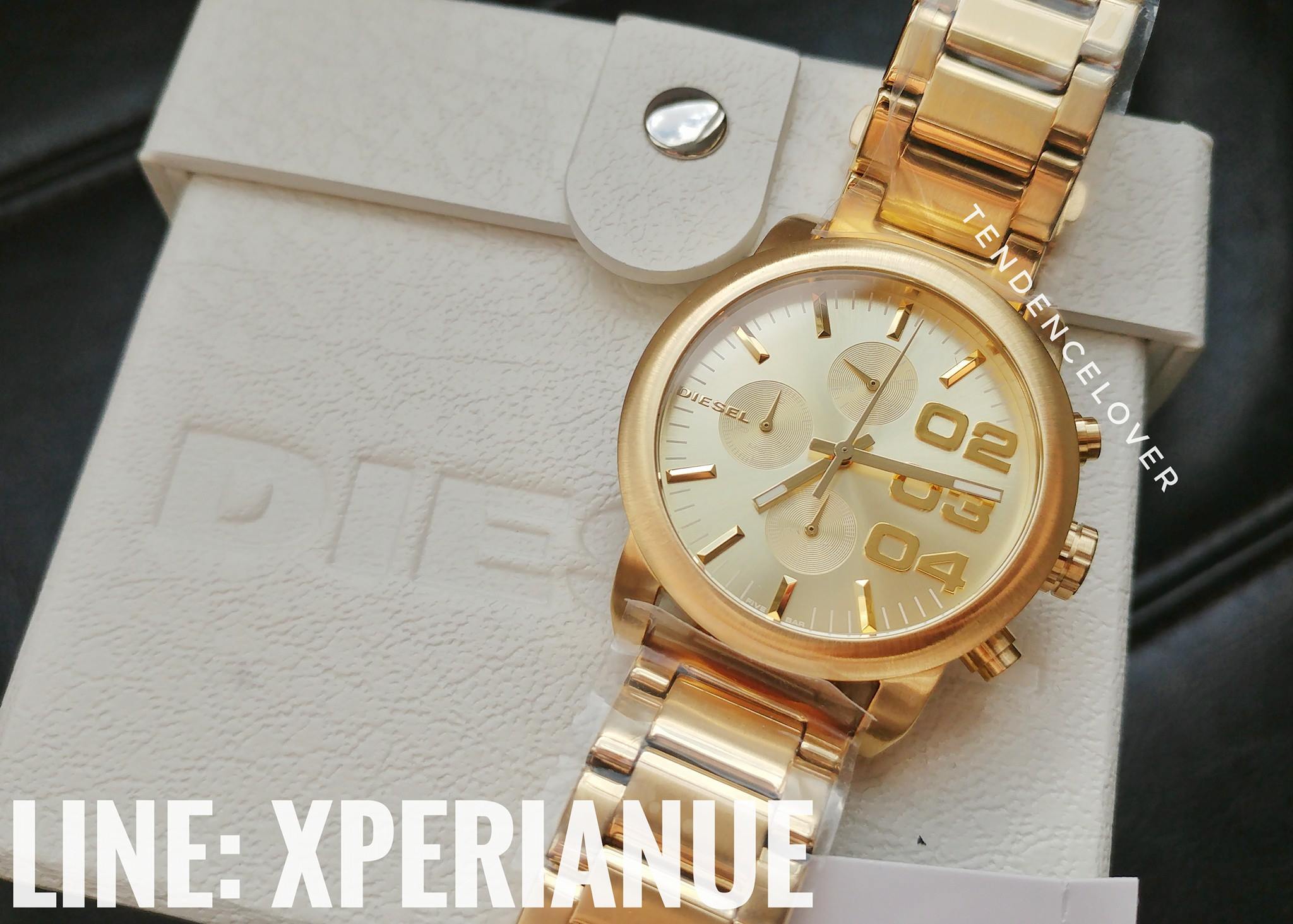 Diesel Little Daddy Dual Time Dial Gold-tone หน้าปัดโครโนกราฟสะท้อนแสงสีเหลืองดำขนาด46มม. มีเอกลักษณ์มากครับ หน้าปัดบอกเวลา2ประเทศ กระจกทำจากมิเนรัลคริสตัล ตัวเรือนและสายเป็นสแตนเลสสีทองครับ แนวและเท่มากครับ ใครชอบนาฬิกาสีทองแนะนำเลยครับเรือนนี้