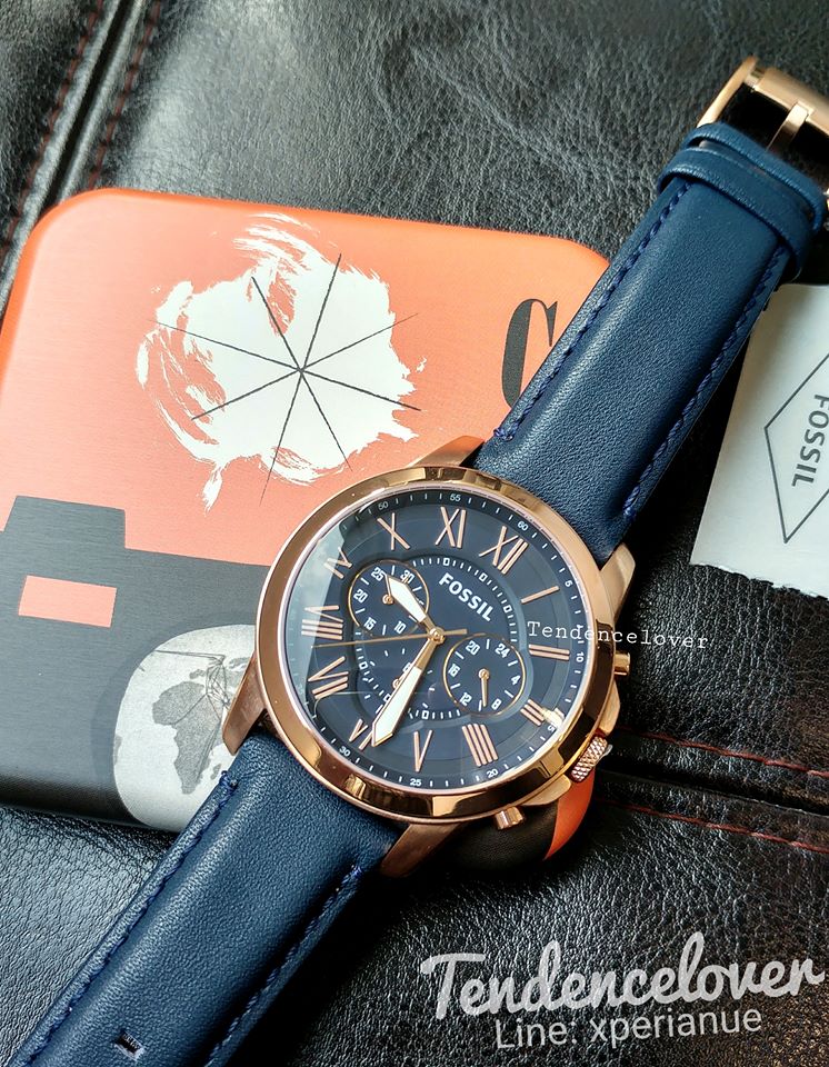 Fossilหน้าปัดโครโนกราฟสีน้ำเงินขนาด 44มม. มาพร้อมสายหนังสีน้ำเงินเข้ม
