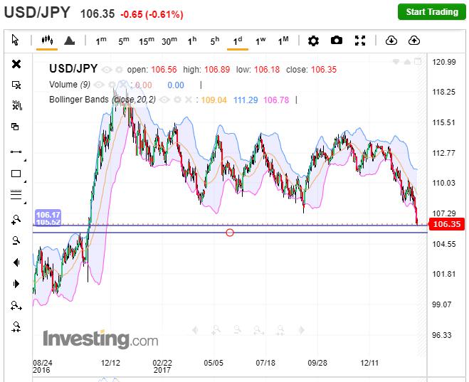 เยนทำนิวโลว์ // ดอลล่าร์ยังไม่นิวโลว์ อดีต 2012 อาเบะเข้ามาดันให้ เยนอ่อน(กราฟขึ้น) ถึง100// แล้วดอลล่าร์มาแข็ง 2014-15 ทำให้เยนอ่อนต่อไปอีกถึง 127 เมื่อเยนอ่อน นิเคอิ ก็ขึ้นด้วย แต่คราวนี้