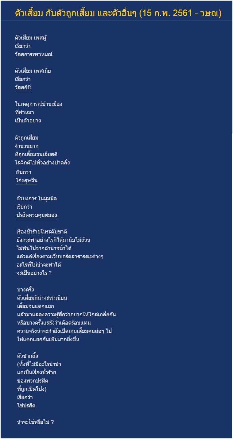 ตัวเสี้ยม กับตัวถูกเสี้ยม และตัวอื่นๆ (15 ก.พ. 2561 - วษณ)