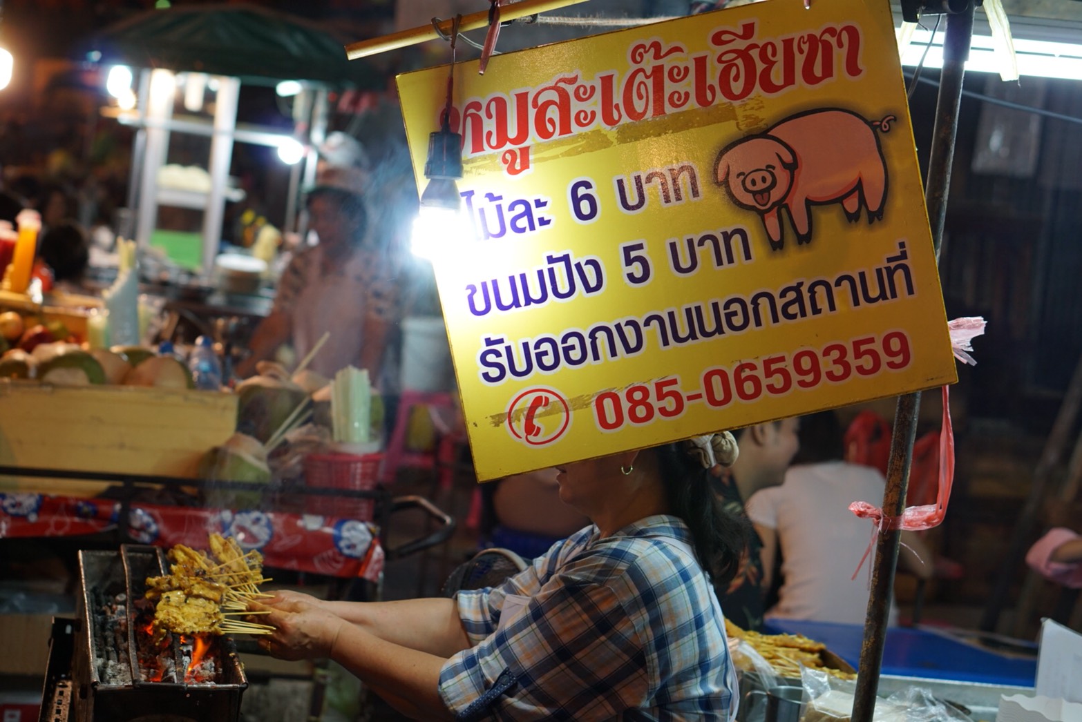 หมูสะเต๊ะเฮียซา ไม้ละ 6 บาท ขั้นต่ำ 10 ไม้ ตามในรูปคือชุดเล็กเลยค่ะ 10 ไม้ 60 บาท
