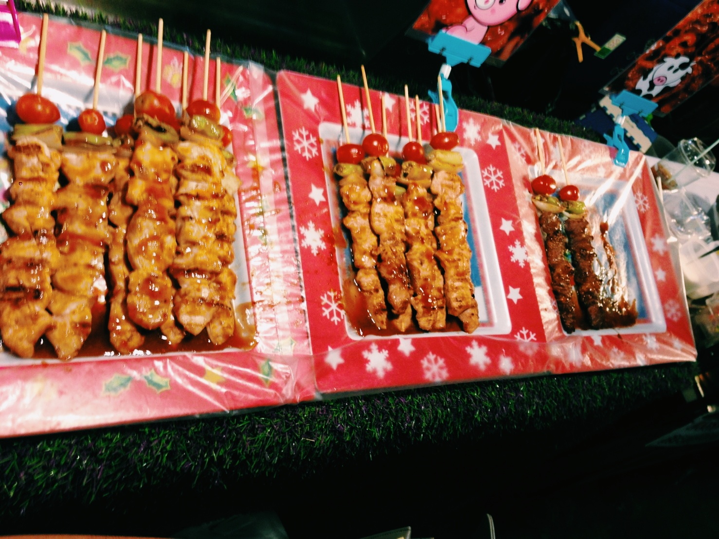 หมึกย่าง6ไม้60 +ซี่โครงหมูอบโอ่ง100 +โกโก้วิปครีม60+ซาลาเปาจิ๋ว6ลูก20 +ยำมาม่า80 +บาร์บีคิว 2ไม้20 +กุ้งย่าง 180 = 520฿ (เกิ่นนิดหน่อยไม่ว่ากันนะเเฮร่ๆ)