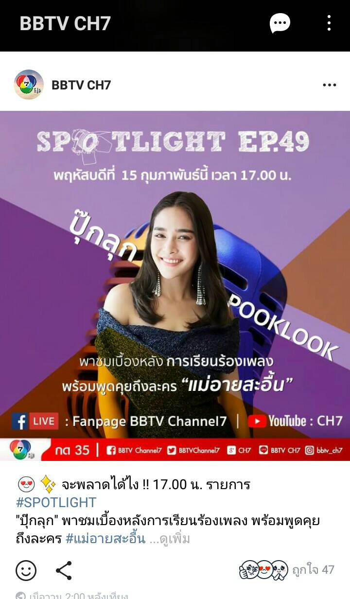 ปกติจะมีผังรายการมาอัพเดทในทุกๆเช้า รวมถึงรายการ ละครในคืนๆนั้น ล่าสุดมีแต่ให้ชมไลฟ์บวงสรวงละคร ส่วนรายการก็ไปโพสต์ในไทม์ไลน์แทน