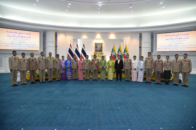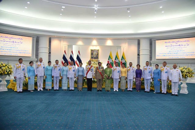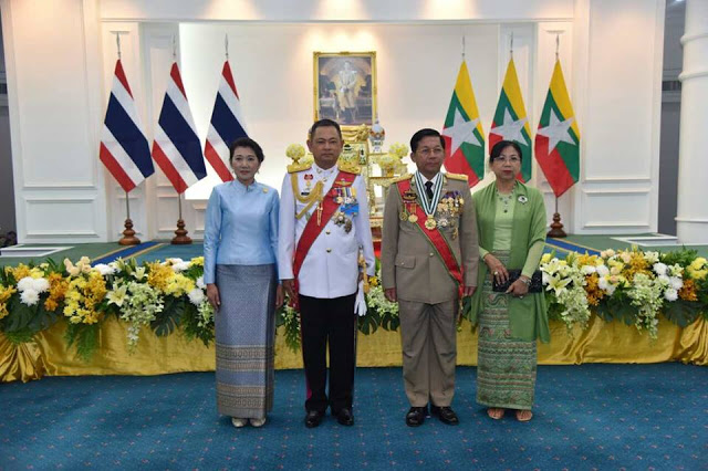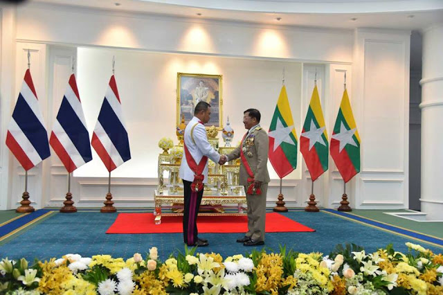 တပ်မတော်ကာကွယ်ရေးဦးစီးချုပ် ဗိုလ်ချုပ်မှူးကြီး မင်းအောင်လှိုင်သည် ယနေ့နံနက်ပိုင်းတွင် ထိုင်းဘုရင်မင်းမြတ်က ပေးအပ်ချီးမြှင့်သည့် မြင့်မြတ်သော ဆင်ဖြူတော်ဝင်သူရဲကောင်းဘွဲ့တံဆိပ်(ပထမအဆင့်) 'The Knight Grand Cross (First Class) of the Most Exalted Order of the White Elephant'' အပ်နှင်းခြင်းအခမ်းအနားသို့ တက်ရောက် လက်ခံရယူသည်။