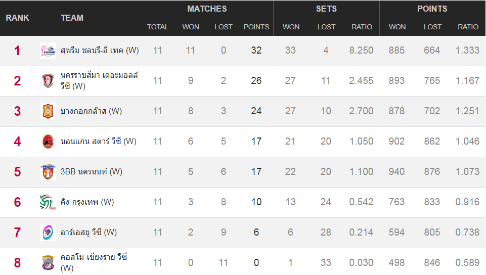 ตารางคะแนน วอลเล่ย์บอล ไทยลีก ประจำวันที่ 10 และ 11 กุมภาพันธ์ 2561