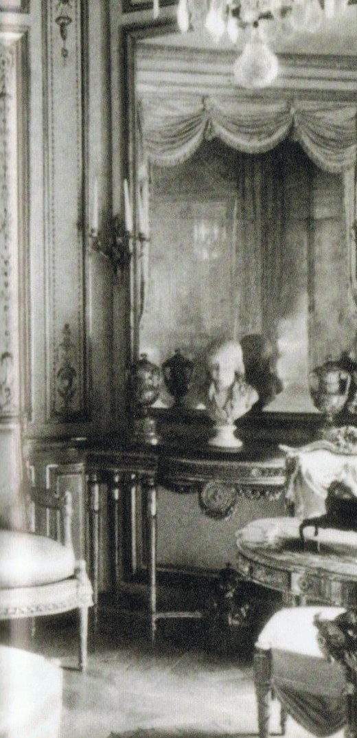 บางคนก็เล่าว่า เจอผู้ชายหน้าตาน่าเกลียด แต่งตัวเหมือนสมัยโบราณ มีผิวขรุขระ ซึ่งคาดว่าคือ ก็องเต้ เดอ โวเดรอุยล์ (Comte de Vaudreuil) เพื่อนของมารีอองตัวเน็ตต์ซึ่งเป็นโรคฝีดาษ